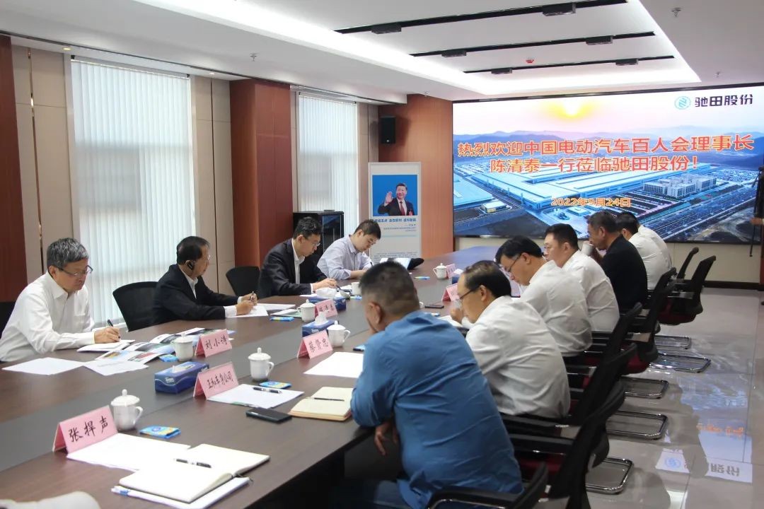 24日下午,中國電動汽車百人會理事長陳清泰、副理事長兼秘書長張永偉、常務副秘書長劉小詩、高級研究員曾瑋亮蒞臨馳田股份參觀調研,十堰市委副書記、市長黃劍雄,市委常委、市委秘書長蔡賢忠,茅箭區委書記張捍聲,茅箭區委副書記、區長李琴等陪同調研,馳田股份董事長黃玉鴻熱情接待講解。